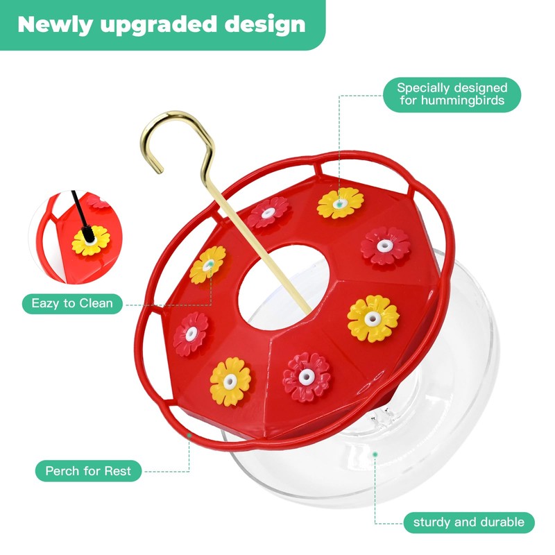- High-Visibility & Bird-Friendly This hummingbird feeder bright red color is easily noticed by hummingbirds from a distance. With a 12 oz capacity and convenient perches, it lets them feed comfortably, so you can enjoy close-up views of these tiny, colorful birds.