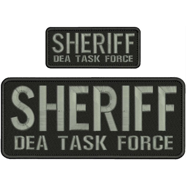 SHERIFF DEA TASK FORCE EMBROIDERY PATCH 10X4 AND 5X2 HOOK ON BACK BLK/GRAY