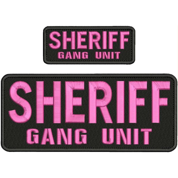 SHERIFF Gang Unit EMBROIDERY PATCH 10X4 & 5X2 HOOK ON BACK Pinkl On Black