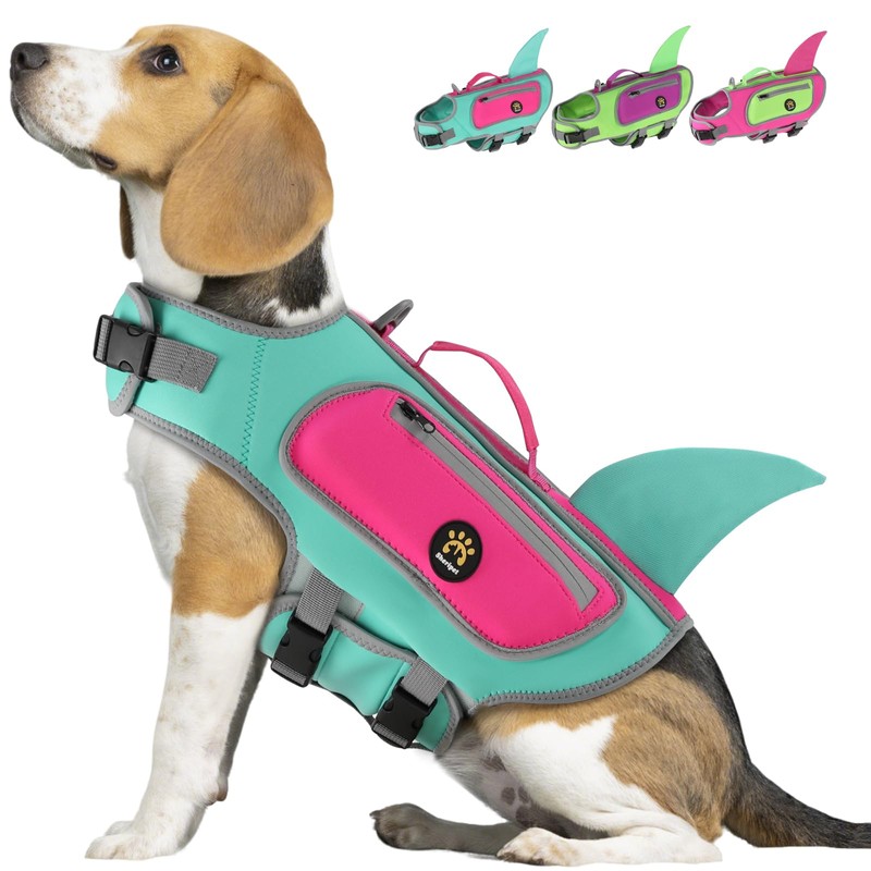 Sheripet Dog Life Jacket, Shark Dog Life Vest Adjustable Pet Swimming Safety Vest with Superior Buoyancy & Rescue Handle for Small Medium Large Dogs, Swim, Pool, Beach, Boating (Turquoise, X-Small)