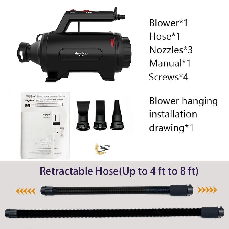 - Innovation and revolutionImproved aerodynamics, reduced volume and weight by half,our dryer improve efficiency over 60%, saving your precious time, especially when grooming large dogs.