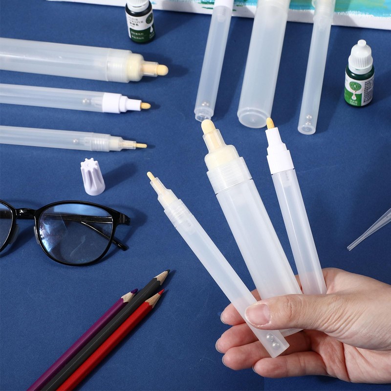 • How to Use: the refillable paint pens are easy to operate and use, the white tube is convenient for you to know the dosage, easy to fill the color, just remove the nib area of ​​the pen, put the steel bead into the pen tube, fill with paint or ink, then screw the nib back, you can start writing; Be careful not to pull out the refill, it may affect the use