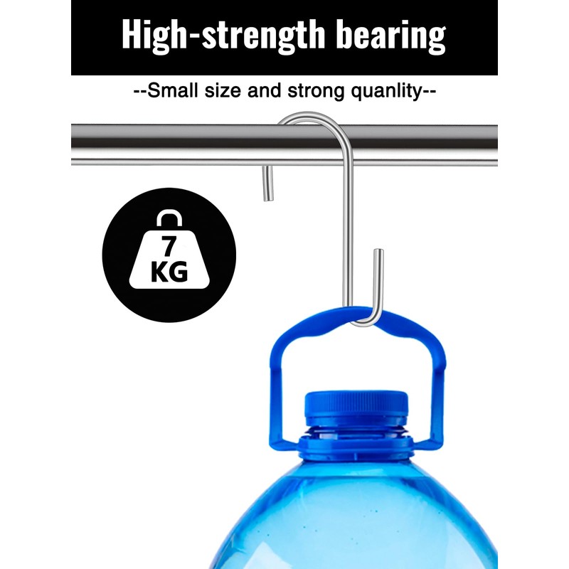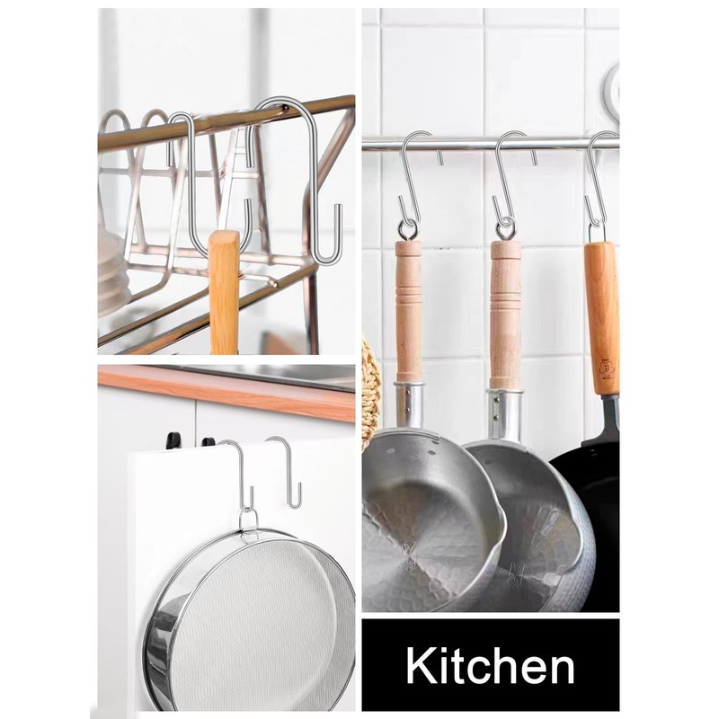 - S hooks stainless steel: The S-hooks heavy duty are made of stainless steel, which is robust and strong enough, feel durable and made to last. The shiny surface is corrosion resistant and rust-proof, so it can be used in environments with high humidity such as outdoors, in the kitchen and in the bathroom. The S-hooks can safely hook the elements and do not slip off easily.