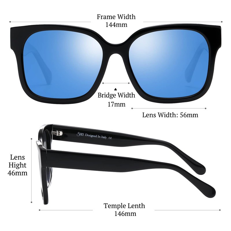 - 【Sunglasses Size】- Lens Width 56mm|2.20in Lens Height 46mm|1.81in Nose Pad Height 17mm|0.66in Temple Length 146mm|5.74in Frame 144mm|5.66in