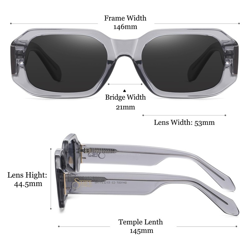 - Retro RECTANGLE STYLE – SHES Rectangle sunglasses for men and women are designed in a stylish, Y2K-inspired rectangular shape, perfect for the fashion-conscious crowd. These tiny sunglasses can be worn with many outfits. It shows your unique and cool attitude to life.