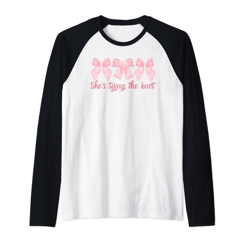 Shes Tying the Knot Bridal Shower Coquette Bows Bachelorette Raglan Baseball Tee