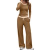 SHESHOW Casual Lounge Sets for Women 2 Piece Outfits Color Block Tops and Long Pants Womens Loungewear Matching Tracksuit Set Khaki M
