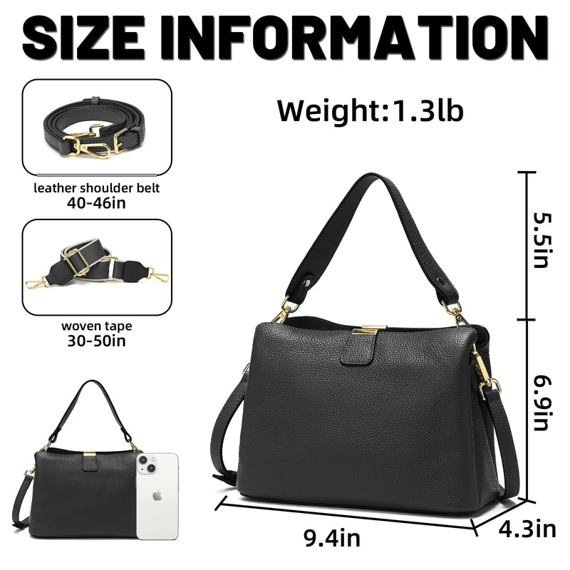 - [Practical Handbag] – 3 straps for this genuine leather women's purses available be carried as handbag, shoulder bag or crossbody bag.
