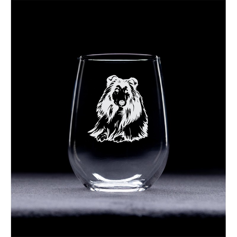 Shetland Sheepdog themed, dog stemless wine glass, 17 oz.
