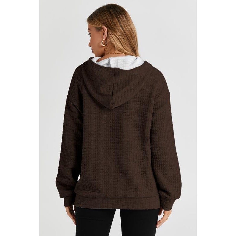 SHEWIN Womens Fall Fashion 2024 Casual Long Sleeve Drawstring Solid Waffle Hoodies Pullover Sweatshirts Loose Fit Fall Sweatshirt for Women,US 12-14(L),Brown