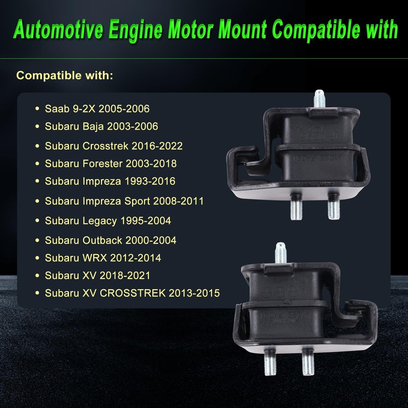 - This engine motor mount set compatible for 2005-2006 Saab 9-2X Subaru 2003-2006 Baja 2016-2022 Crosstrek 2003-2018 Forester 1993-2016 Impreza 2008-2011 Impreza Sport 1995-2004 Legacy 2000-2004 Outback 2012-2014 WRX 2018-2021 XV 2013-2015 XV CROSSTREK