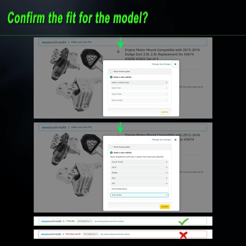 - RIENDLY REMIND: Please check the engine motor mount fitment details or use the left top-year/make/model drop down bar and Interchangeable part numbers. Before purchasing to make sure this parts will fits on your vehicle.