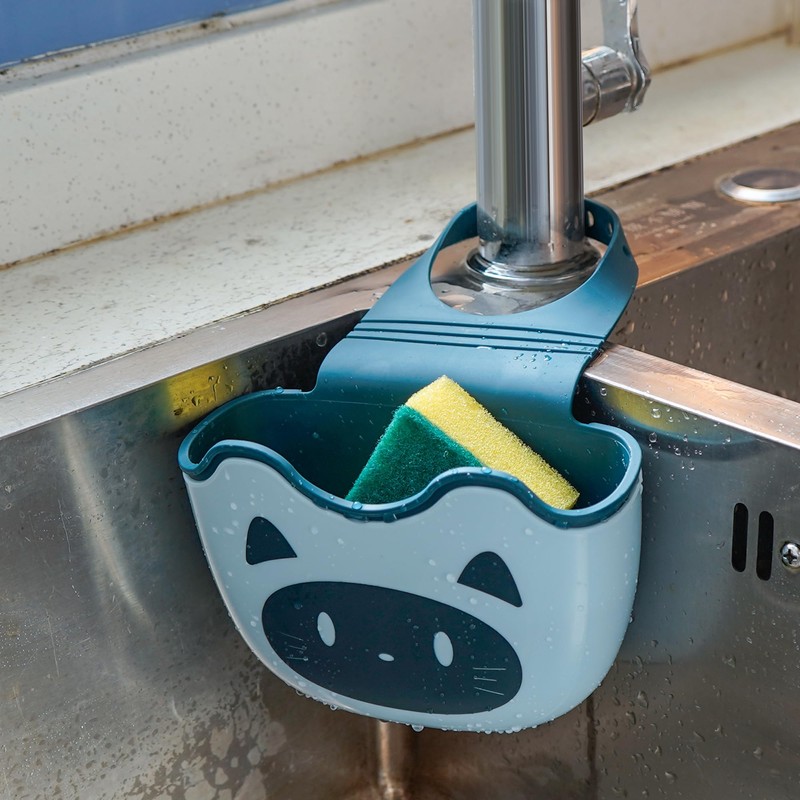 SHIDOW Sink Caddy Sponge Holder, kitchen sink shelf over faucet, Silicone Plastic Soap Holder for Drying (Blue)