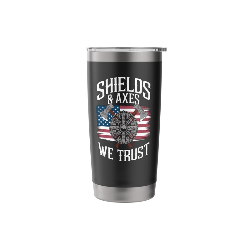 - shields and axes we trust. as an american and a fan of the viking culture and the nordic way of life that design is perfect for you.