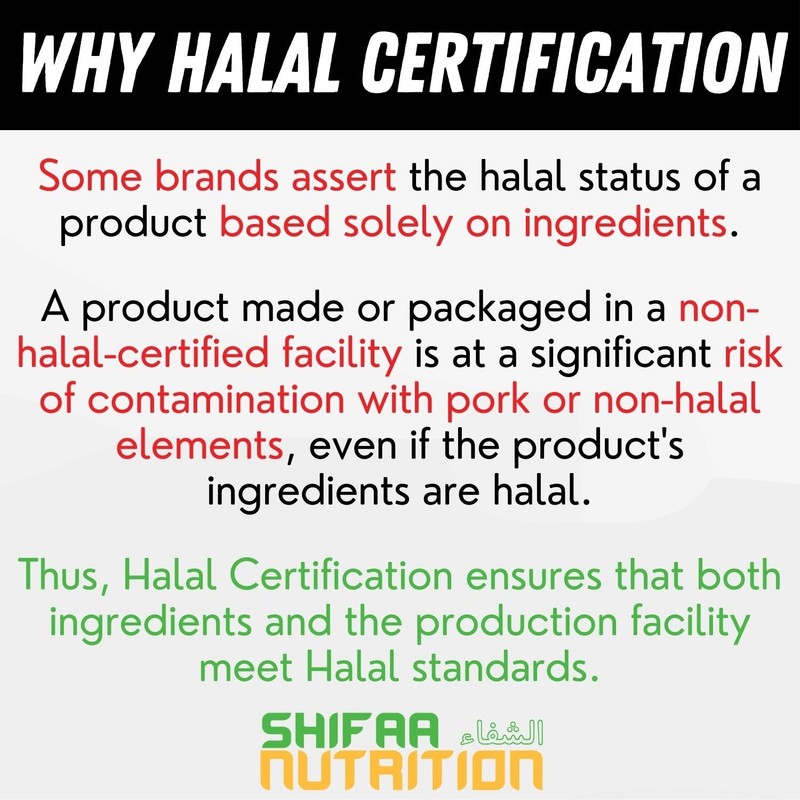 - QUALITY: Our products are proudly MADE IN THE USA, within an FDA-registered facility under strict GMP guidelines, HALAL Certified by American Halal Foundation. SHIFAA NUTRITION is a brand you can trust because WE STRIVE FOR QUALITY and CUSTOMER SATISFACTION.