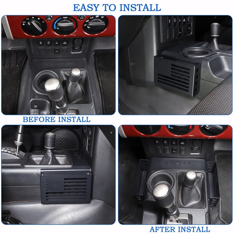 - PERFECT FITTING: Gear shift console side storage box suitable for Toyot@ FJ Cruiser 2007-2021, Fit for Left Hand Drive. According to the original car design, added a beam design to connect two storage boxes, provide more space.