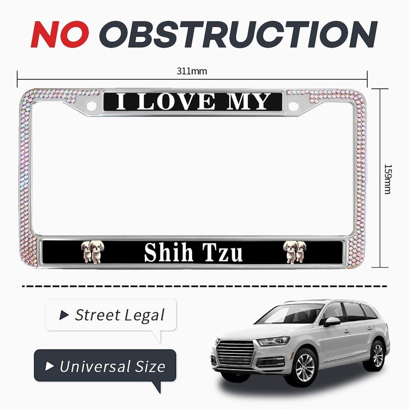 Shih Tzu Lover Gift Diamond License Plate Frame for Women Shih Tzu Paw Bling License Plate Frame Cute I Love My Shih Tzu Glitter License Plate Frame for Dog Lover