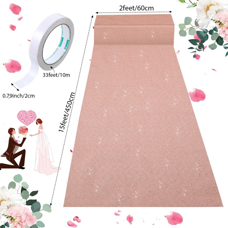 - Nice Workmanship: the wedding rug aisle runner slides easily on the floor, therefore, considering your usage requirements, we provide a roll of double sided carpet tape for securing the carpet to the smooth or rough floor firmly, to avoid most accidents without leaving residues