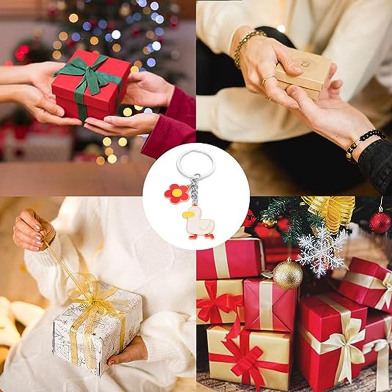 - This duck keychain has a unique design, plus a duck accessory and a flower accessory, which will make duck lovers fall in love with this gift.
