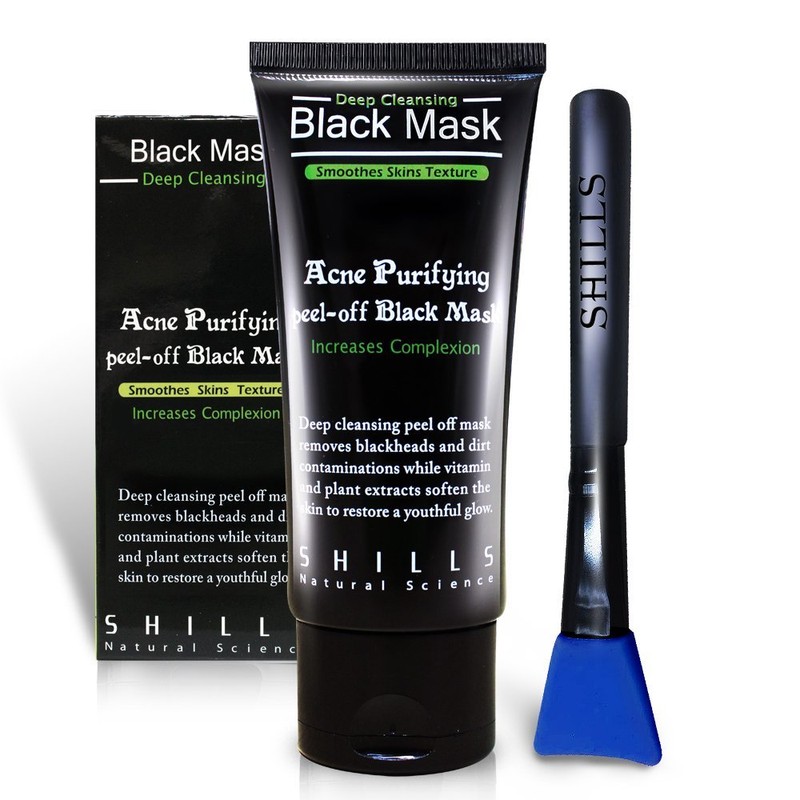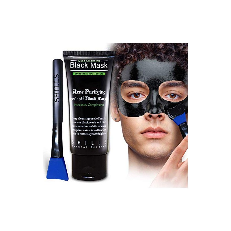 SHILLS Black Mask for Men, Black Mask Purifying Peel Off Mask, Charcoal Mask, Blackhead Removal Mask, Peel Off Mask, Charcoal Mask and a Brush Set