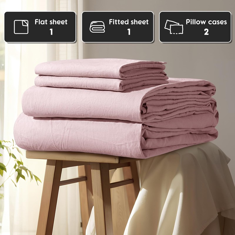 - CARE GUIDE: This soft and comfortable linen bed sheet can be machine washed in cold water, tumbled dry at low speed, dried at low temperature, and cannot be bleached. It has good color fastness, is not easy to fade, and may have a small amount of wrinkles. Because it is a slender natural fiber, it will become softer after each washing. It has the ability of self-cleaning, so it does not need to be washed frequently. Therefore, linen cloth is more durable than cotton sheets