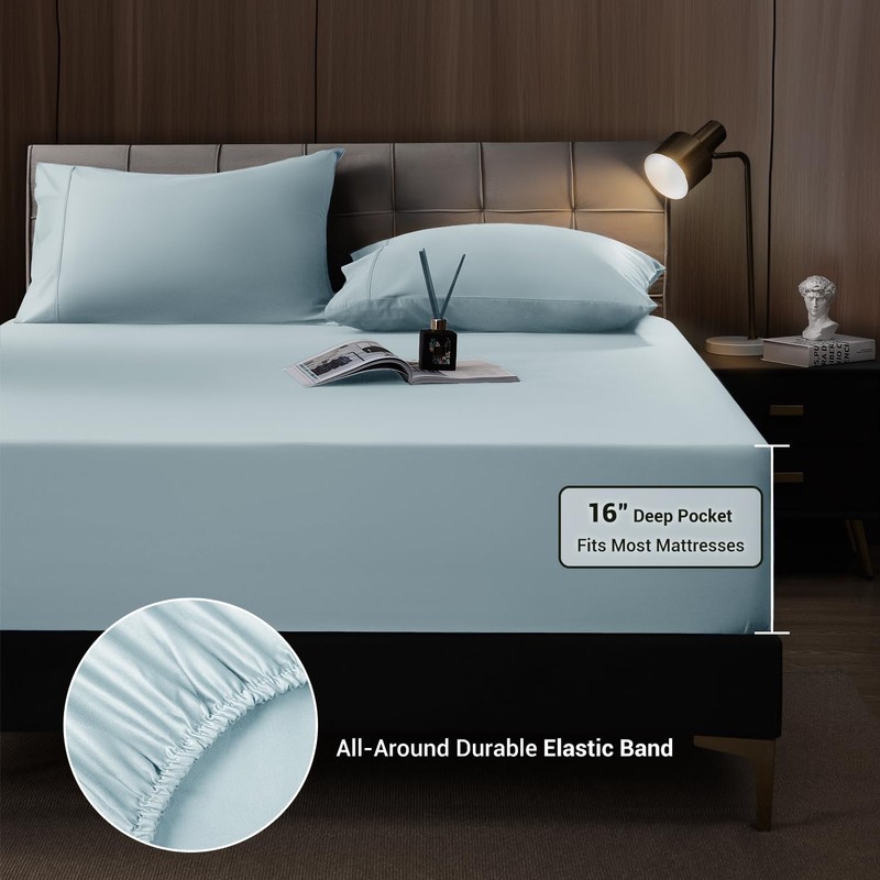 - AFFORDABLE LUXURY: With our Queen size 4 pc sheet sets, we include 1 flat sheet 92" x 102", 1 fitted sheet 60"x80"x16",2 pillow cases 20" x 30". This is the pinnacle of modern luxury bedding finally available at a price that won’t bust your budget.Deep pockets that fit mattresses up to 16" deep .These sheets grip and fit better than any other sheet set! It will never slide no matter how you twist and turn in your bed.Giving you the perfect restful night’s sleep