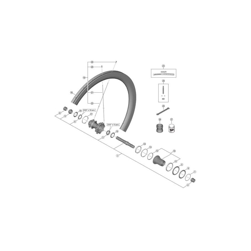 - Shimano Small Parts [1] Hub Shaft Assembly (142 mm) between each section