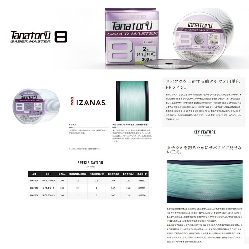 Shimano Tanatoru 8 Saber Master Lime Green 100m 12 Connection [1200m] No. 3