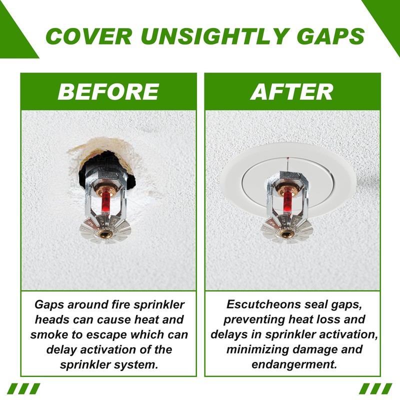 - Conceal and Protect: our 12 pack fire sprinkler escutcheons are crafted to conceal openings created for various recessed sprinklers, delivering a tidy appearance; By applying these trims, you can ensure an immaculate integration of fire safety features with your interior decor