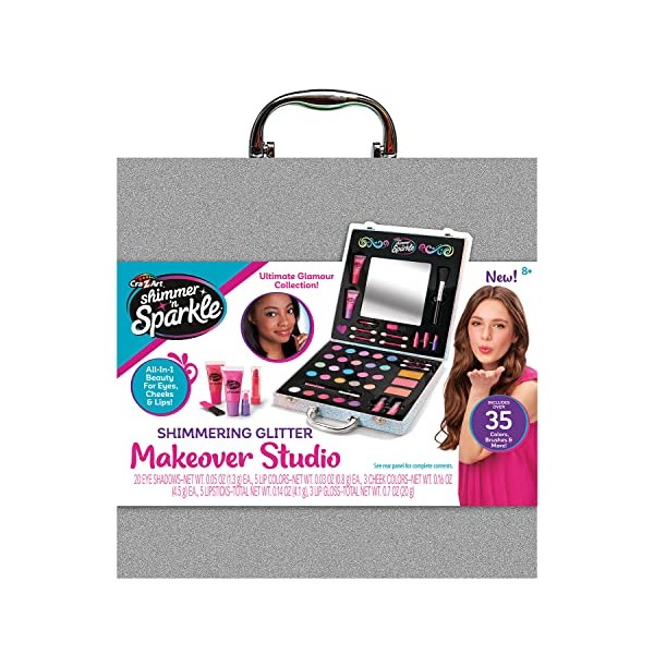 - Shimmer ‘n Sparkle Glitter Makeover Studio Beauty Kit is the ultimate glamour collection that includes over 35 colors, brushes and more