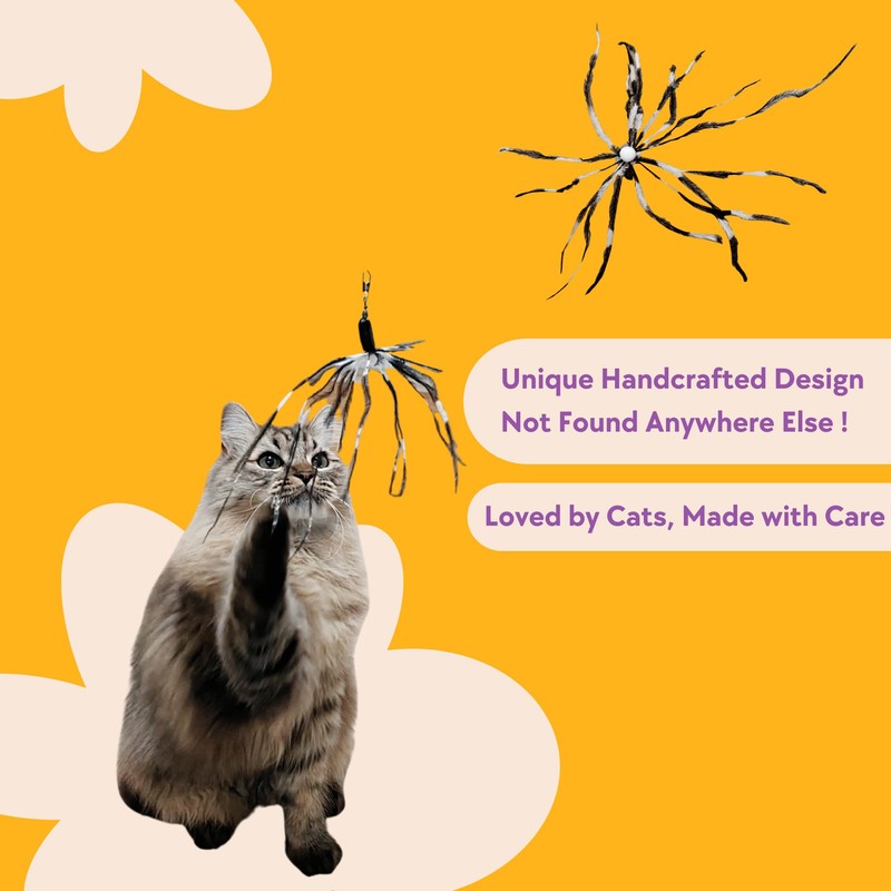 - Easy-to-Use Refill System: This toy wand comes with a spider teaser and one spider refill, ensuring your cat never gets bored. Easily switch out with cat toy mice or other accessories.