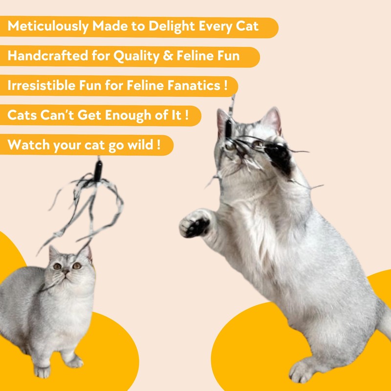 - Stylish & Durable Wand Toy: Featuring a sturdy 3-level retractable wand with a white body and soft orange handle, this cat toy is built to last and designed to look great while you play.