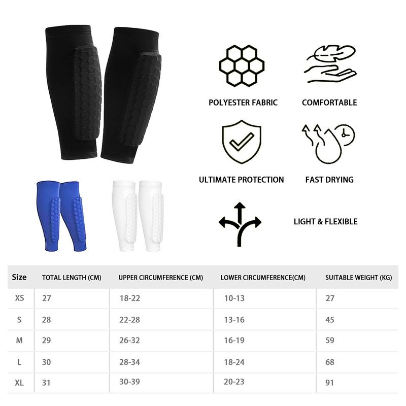 Package Includes: 1 pair of Honeycomb Shin Guards