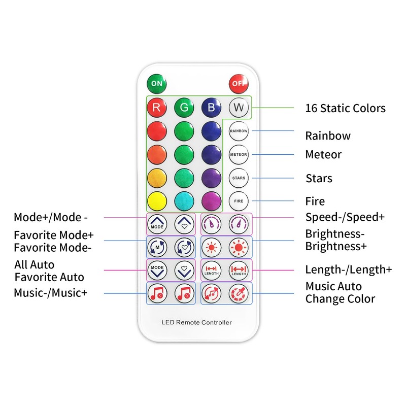 - 【Multiple color effects】This smart controller designed with 142 dynamic effects, such aswiping, breathing, rhythm, spectrum, rainbow, meteor, stars, fire and many static color effects. You can set the speed, effect length and brightness as needed. Also, when the app color is inconsistent with the color of the LED strip, the color can be calibrated to make it consistent.
