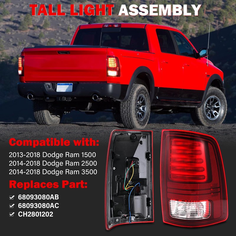 SHINEHONE Ram Tail Light Assembly Compatible With Ram 1500 2013-2018 Ram 2500 3500 2014-2018 Rear Taillight Brake Lamp With Bulb Right Passenger Side Replaces 68093080AB 68093080AC CH2801202