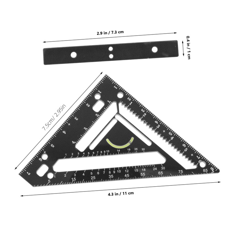 • Rafter square:this multifunctional ruler can be used as a woodworking measuring tool, angle ruler, and template measure ruler, of multiple uses,measurement tools