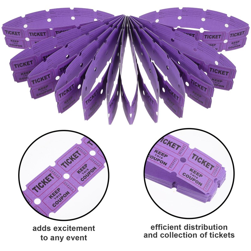 SHINEOFI 100pcs Purple Colored Raffle Ticket Double Roll Carnival Fair Split ...