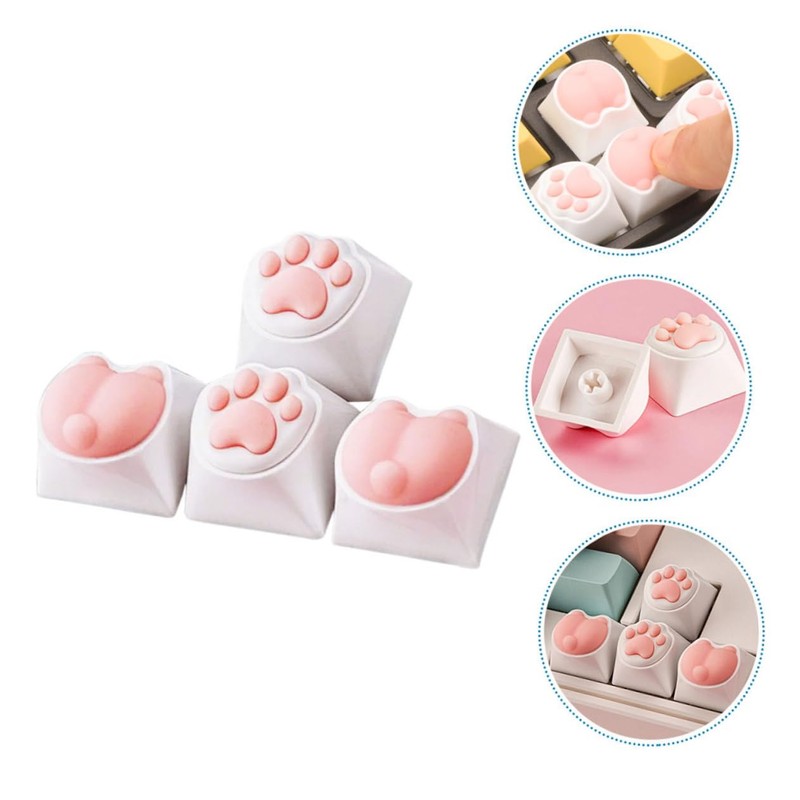 SHINEOFI 4Pcs Cat Paw Keycaps for Mechanical Gaming Keyboards Skin Friendly M...