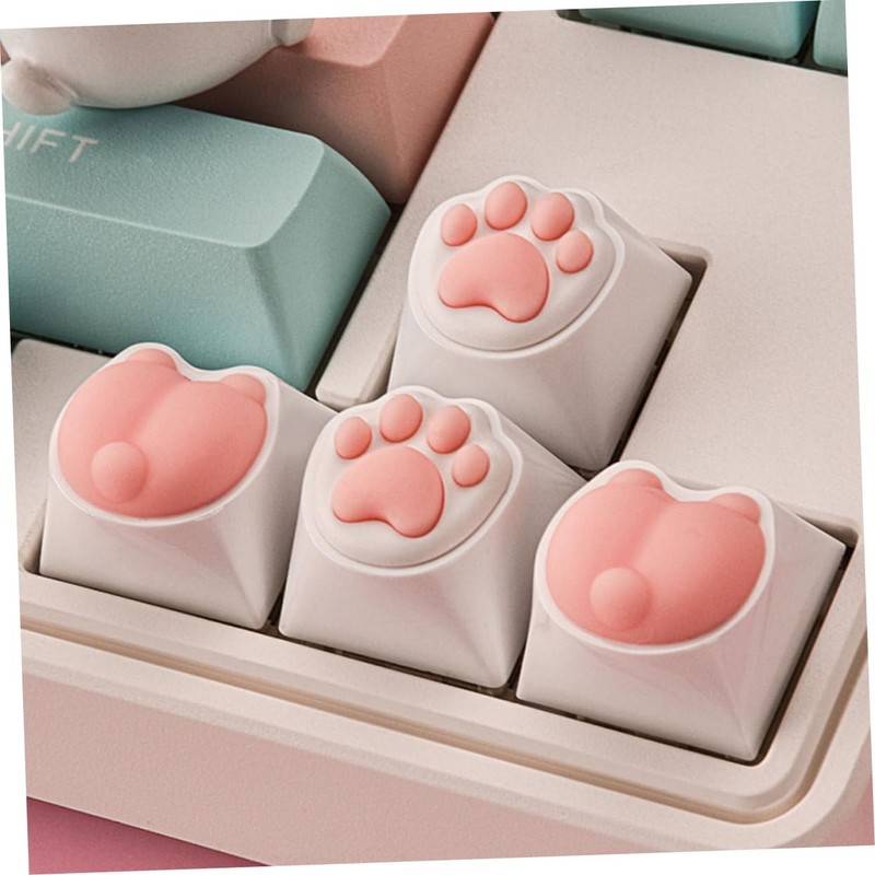 SHINEOFI 4Pcs Cat Paw Keycaps for Mechanical Gaming Keyboards Skin Friendly Material Unique Cat Keycaps for Touch Comfortable Typing