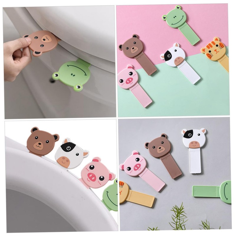 SHINEOFI 4pcs Toilet Seat Lifters with Cartoon Patterns Easy Installation Toilet Lid Lifters Lightweight Bathroom Accessories for Home Hotel and Dorm Use
