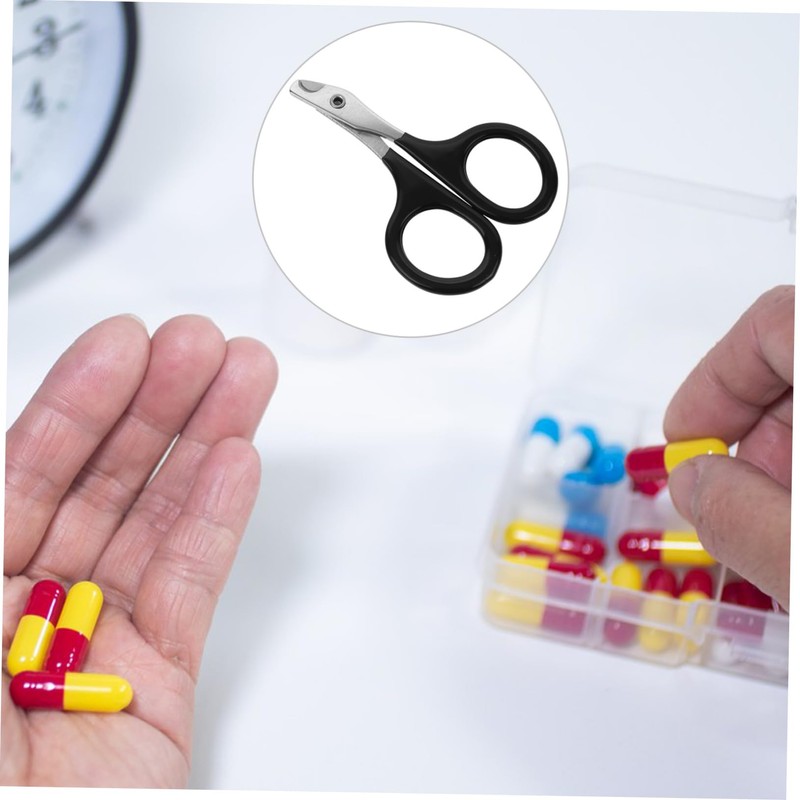 - Ergonomic handle for comfortable grip and easier use. Cutting pills is easier and faster, reducing the rate of error scissors.