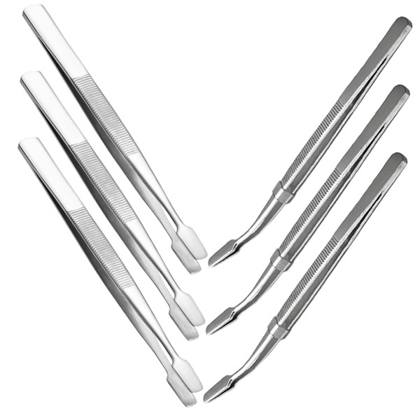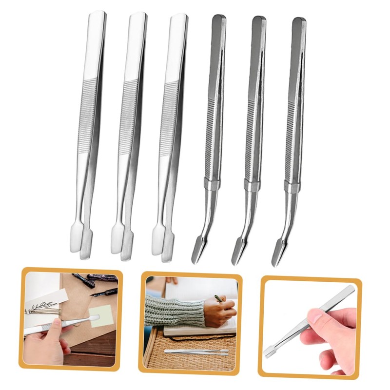SHINEOFI 6pcs Multi-use Metal Tweezers for Stamp Collecting Hobby and Eyelash Application Stainless Steel