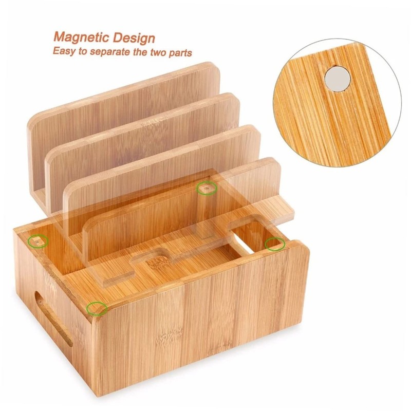 - Device charging station--made of wood material, will bring fresh and natural feeling for your home,charging station device organizer