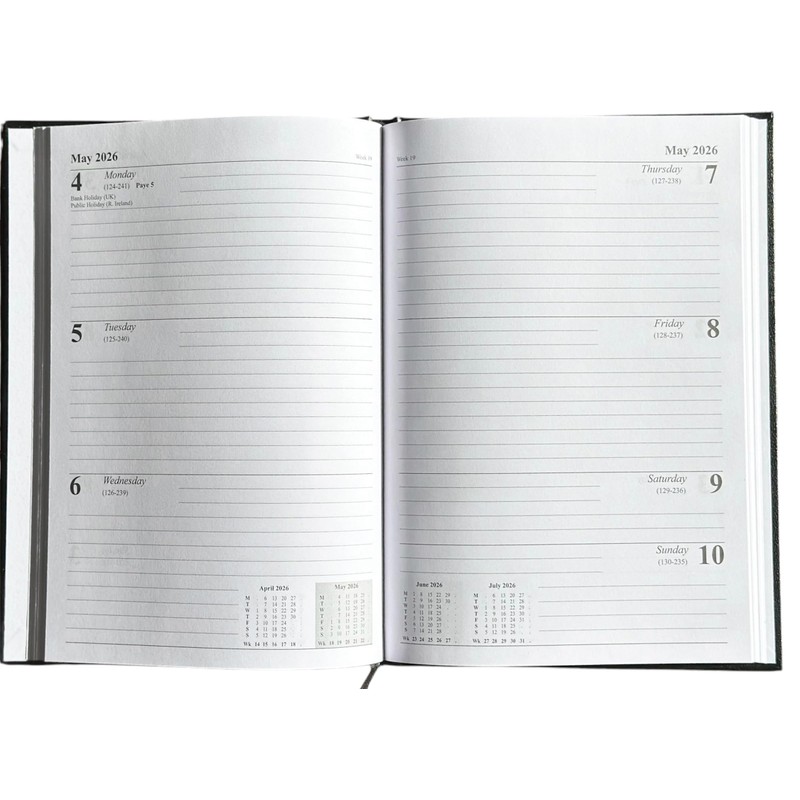 - Diary 2026 A4 Week To View Premium Quality Personal Organiser Planner Hardback Case bound Gold Foil text on cover. Hardcover with matching ribbon bookmark.Dates start December 15st 2026 and end January 3th 2027