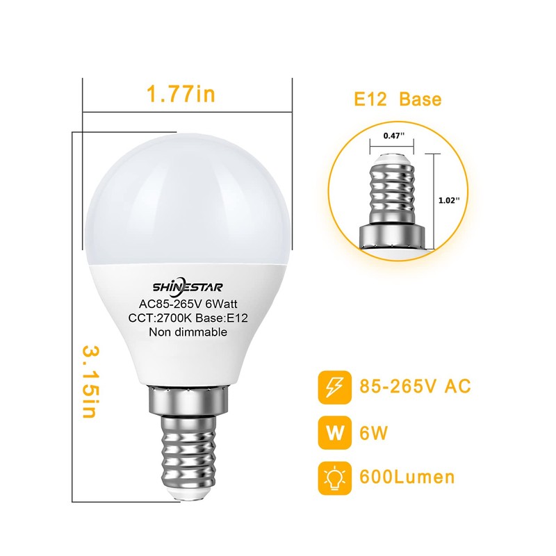 With E12 small base, it can be easily fit in any candelabra lamps, easy installation.