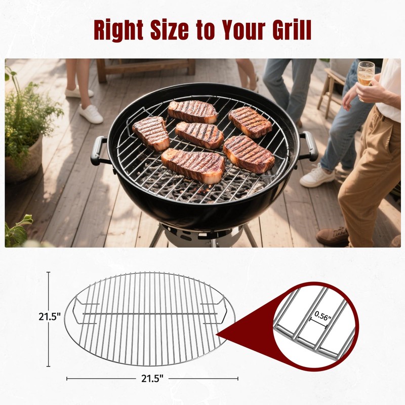 - Perfect Compatibility: The 21.5" grate fits various Weber 22" charcoal grill models, including Original Kettle, Original Kettle Premium, Master Touch, Performer, and Jumbo Joe Premium. Note: not compatible with Smokey Mountain Cooker and not guaranteed to fit non-Weber 22" charcoal grills.