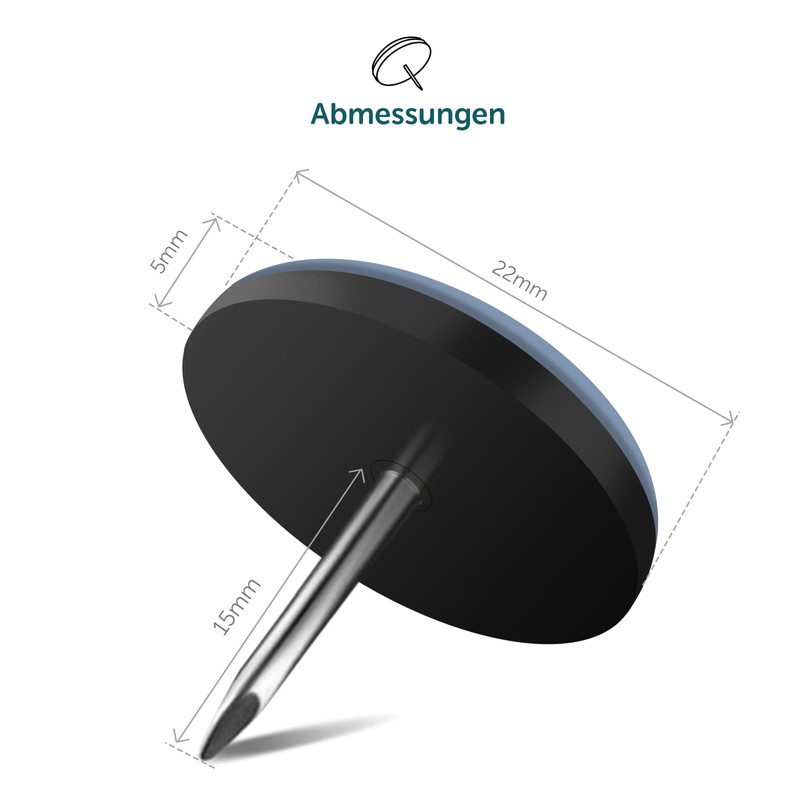 - Package contents: includes 24 pieces furniture gliders Teflon, diameter 22 mm, thickness 5 mm, nail length 15 mm. Simply screw onto the wood for quick and easy installation.