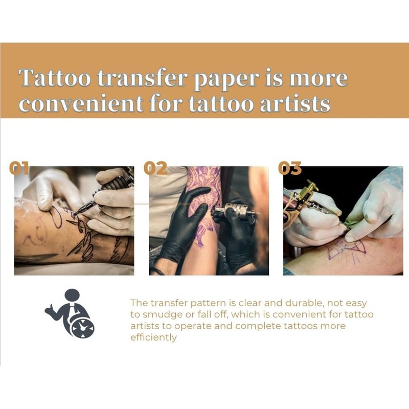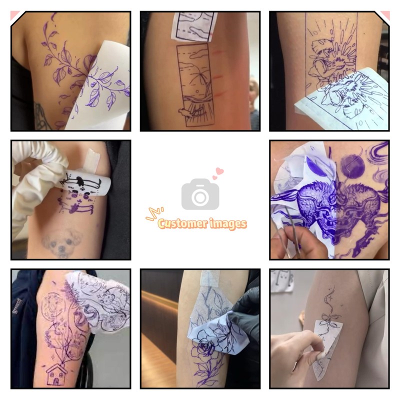 - Warm Tips: The tattoo transfer paper need to work with transfer medias. You will need to purchase the stencil ointment separately. Apply the design made on the master paper. Please pay attention to press the back side of the pattern to the skin for at least 3 seconds.