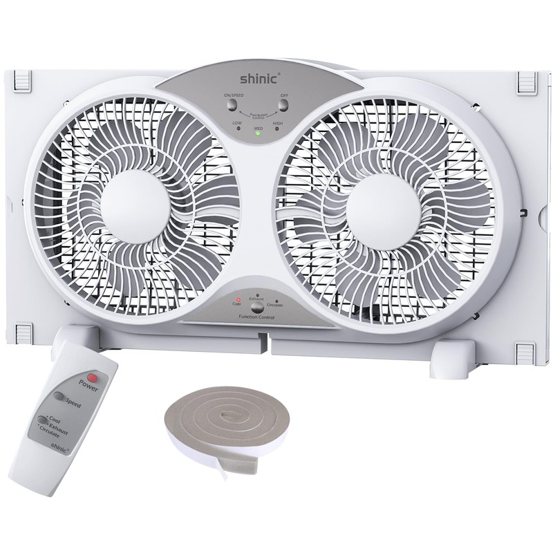 shinic Window Fan with Reversible Airflow Quiet, Twin 9" Blades, Full Remote Control, 3 Functions-3 Speeds, Bathroom Kitchen Window Exhaust Fan, Width Adjustable (From 23.5" to 37") ETL Certified