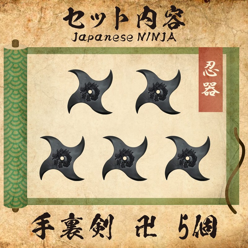 - (Details) Shuriken: Approx. 3.5 x 3.4 inches (8.8 x 8.8 cm), Approx. 0.5 x 3.9 inches (14 g), Three Sides: Approx. 2.3 x 3.1 inches (8 g), Six Sides: Approx. 3.5 x 3.1 inches (9 x 7.8 cm), Approx. 0 g)